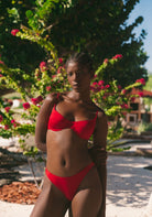 Anemona es un bikini de dos piezas diseñado para ofrecer soporte estructurado en el top por sus copas sin relleno, por los tirantes ajustables y el broche en la espalda; en cuanto a la panty, garantiza máxima comodidad y cobertura, ideal para quienes priorizan el confort y un estilo más recatado.