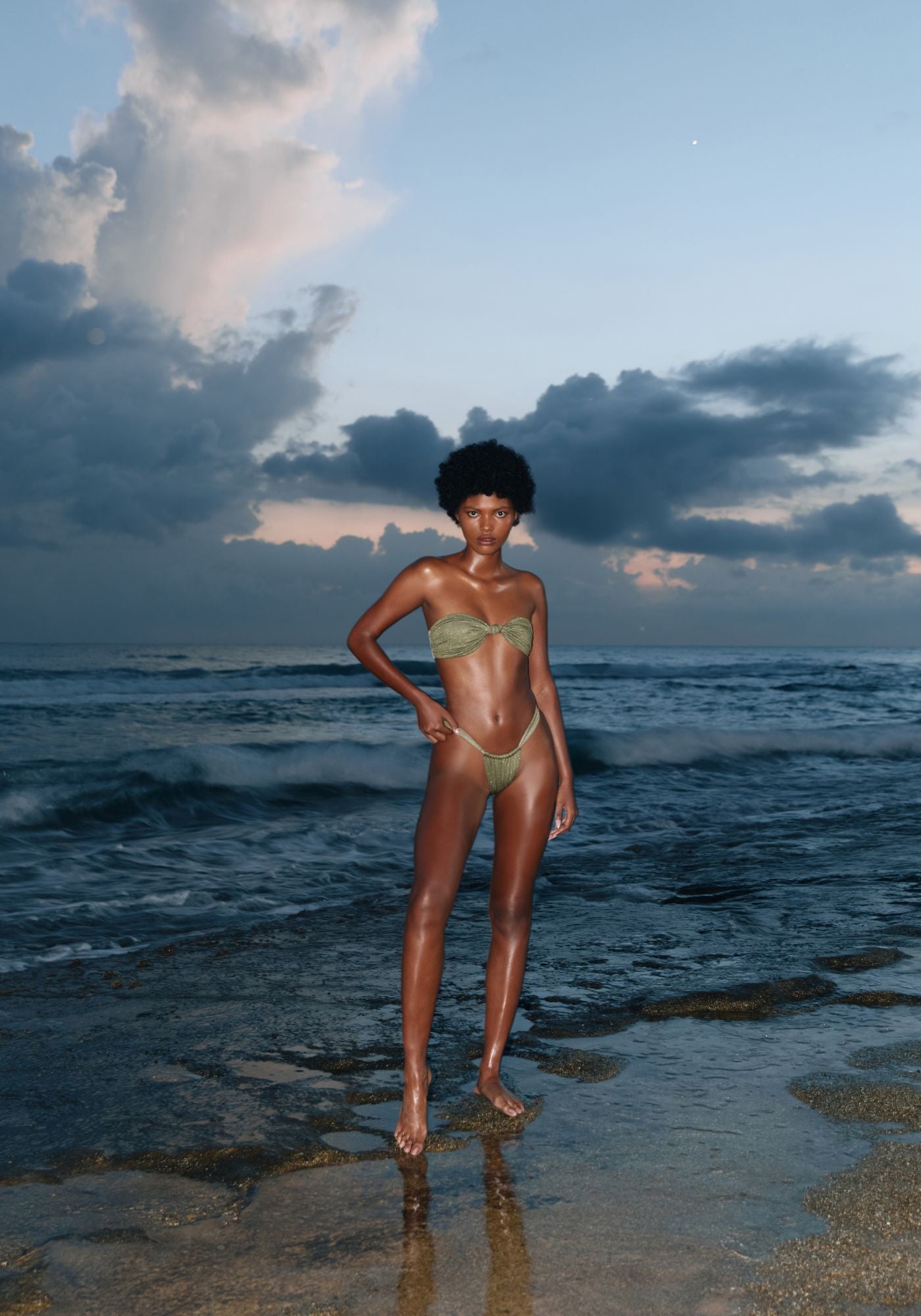El bikini “Kavala” es la fusión perfecta entre sofisticación mediterránea y sensualidad contemporánea. Su top tipo bandeau, con un delicado nudo central, realza el busto de forma natural y elegante, manteniendo un ajuste cómodo gracias a su diseño sin aros.
